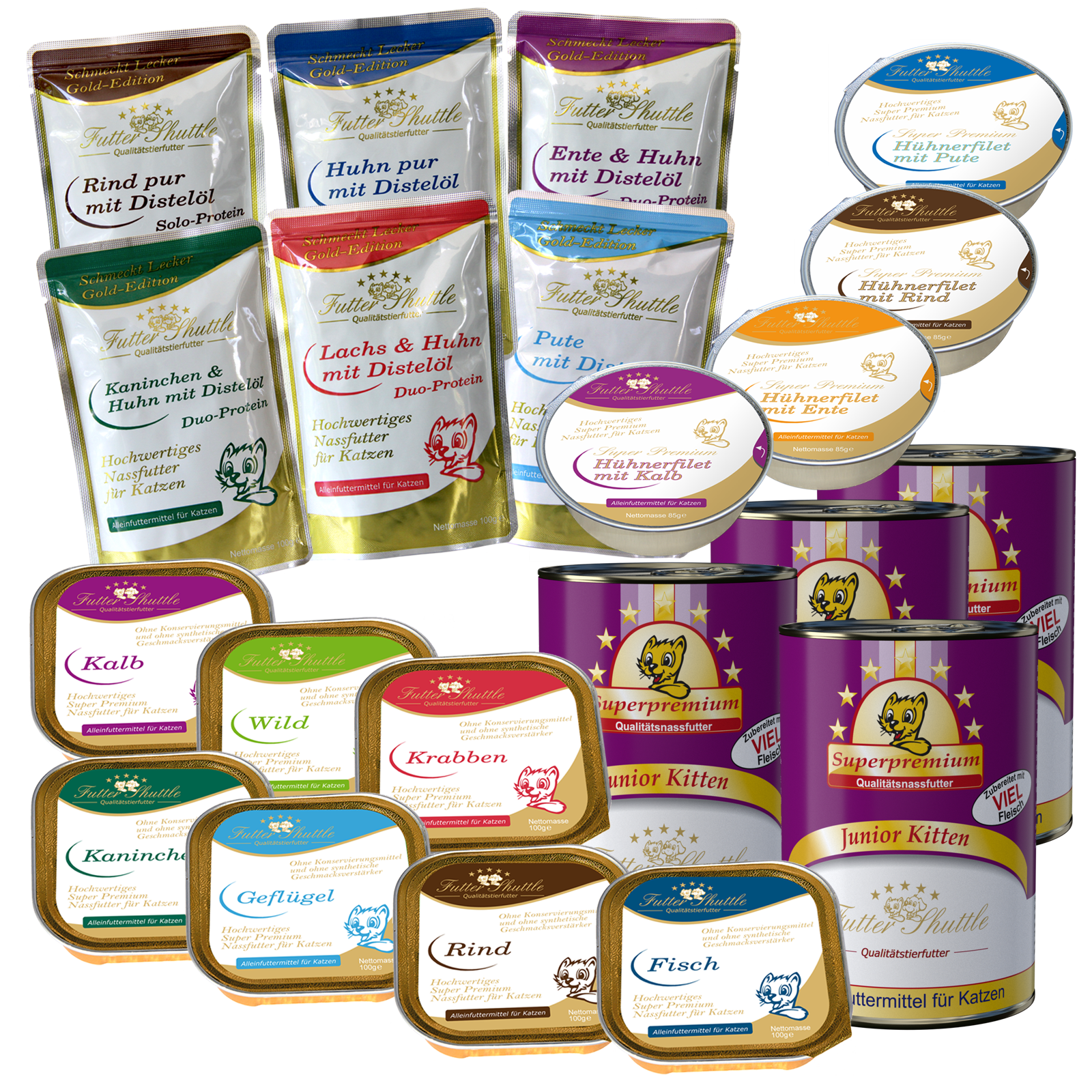 Kitten Nassfutter als Probierpaket. Eines der hochwertigsten Kittenfutter auf dem Markt! Gönnen Sie Ihrer Katze ein Nassfutter in Spitzenqualität.